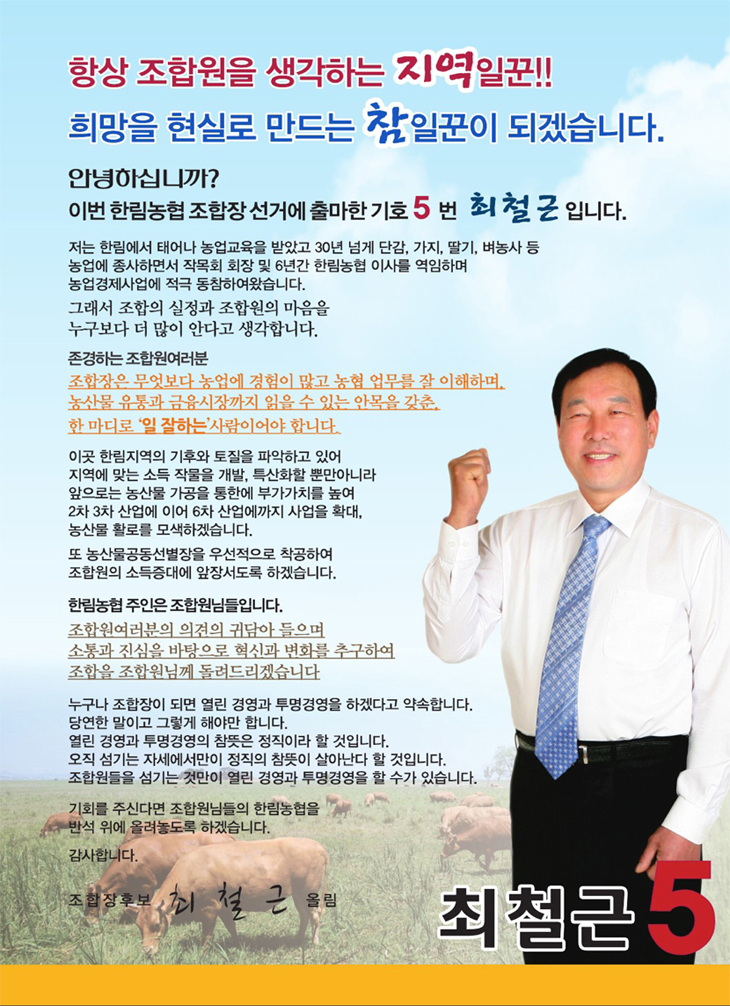 ÃÖö±Ù Á¶ÇÕÀå Èĺ¸ ¼±°ÅÈ«º¸¹° (ÇѸ²³ó¾÷ Çùµ¿Á¶ÇÕ)